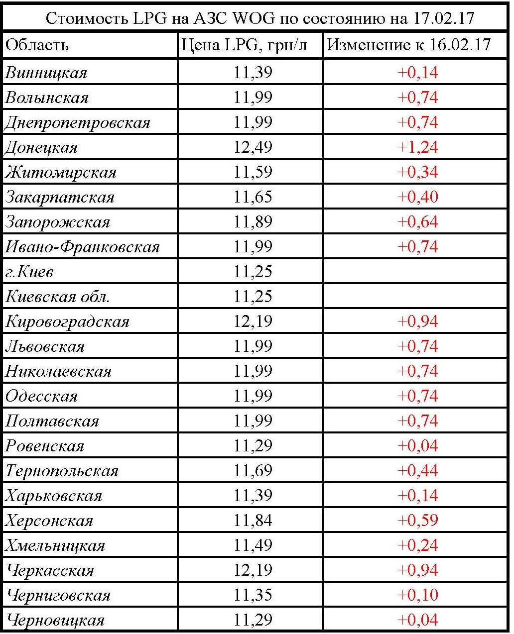 В течение 16-17 февраля стоимость сжиженного газа на АЗС WOG выросла на 4 коп./л – 1,24 грн/л.