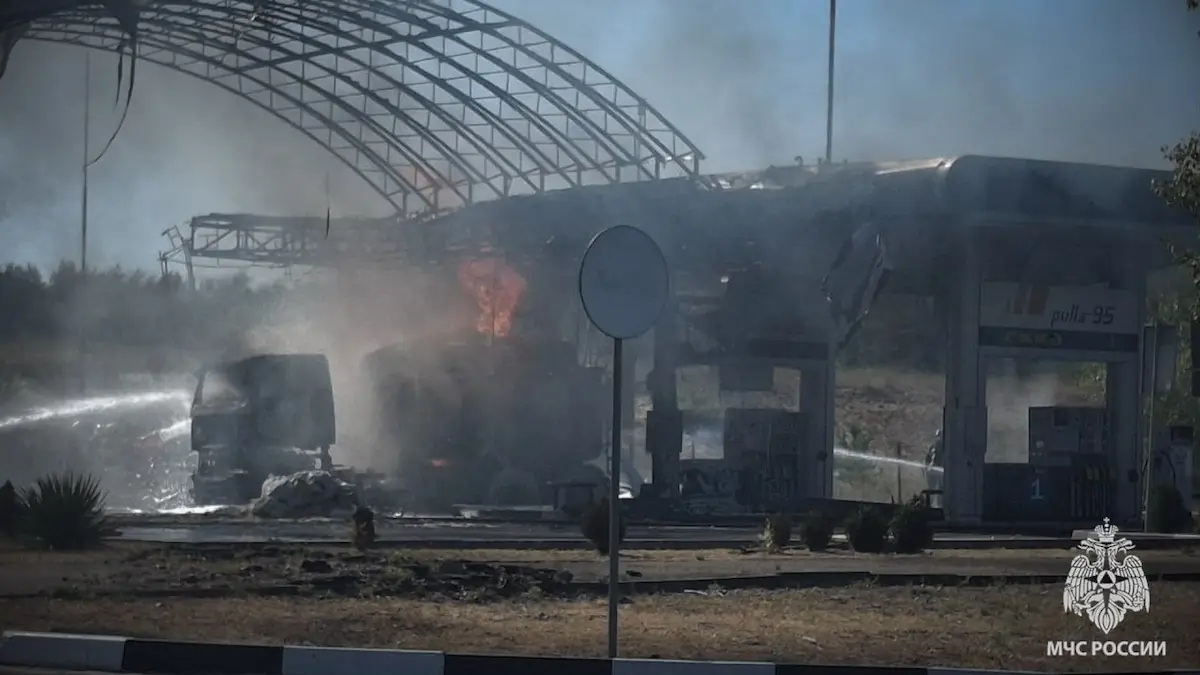 В тимчасово окупованому російською армією Сіверськодонецьку Луганської області після удару дрона горіла АЗС OKKO, повідомило МНС Росії в Telegram-каналі.