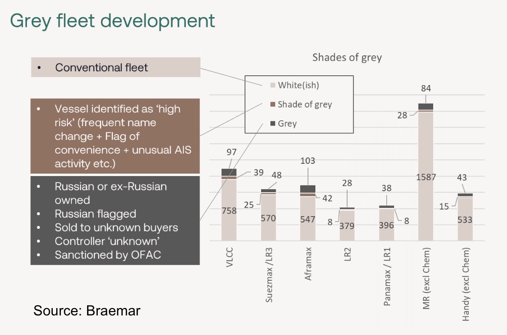 Нижче наведено дослідження брокерів Braemar щодо розмірів “сірого флоту” за типами танкерів станом на 26 квітня.