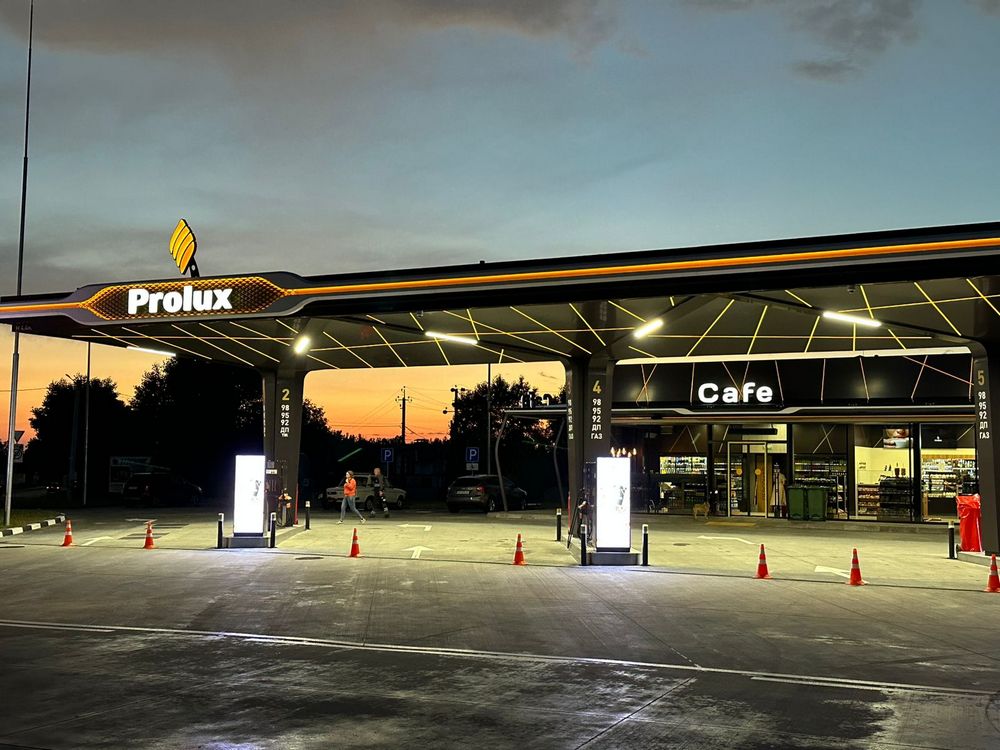 В кінці травня в м. Калинівка (Київська обл.) було відкрито нову АЗС мережі Prolux. Станція виконана в сучасному стилі, в темних кольорах: коричневий та графіт, на фоні яких виразно видно логотип золотого кольору з білими буквами. При відсутності денного світла до темної гами АЗС додається помаранчевий колір. Фасадне оздоблення виконували фахівці полтавської Bomond Construct.