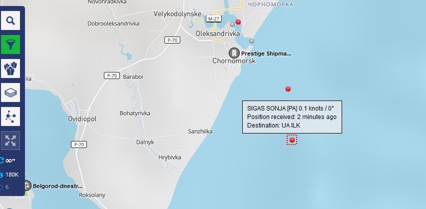 По данным сервиса marinetraffic.com на терминал по перевалке сжиженного газа«Хим-Ойл-Транзит-Юкрейн» в г. Черноморск (бывший Ильичевск) движется LPG танкер Sigas Sonja, который ходит под панамским флагом.
