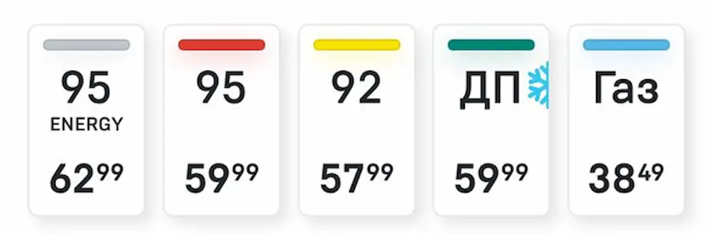 | Мережа АЗС | А-92 | А-95 | А-95+ | ДП | ДП+ | |||||