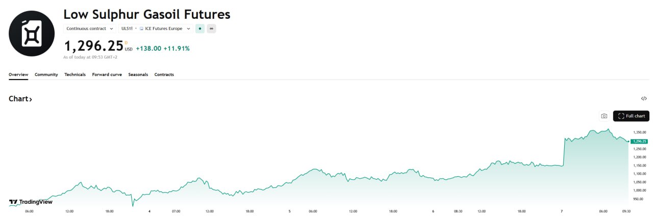 Крім того, стрімко зросли котирування на нафтопродукти в Європі. Зокрема, на Лондонській біржі Gasoil 10 ppm в понеділок ранком торгувався по $1372/т. На тлі цього оптові компанії в Україні зняли з продажів дизпальне.