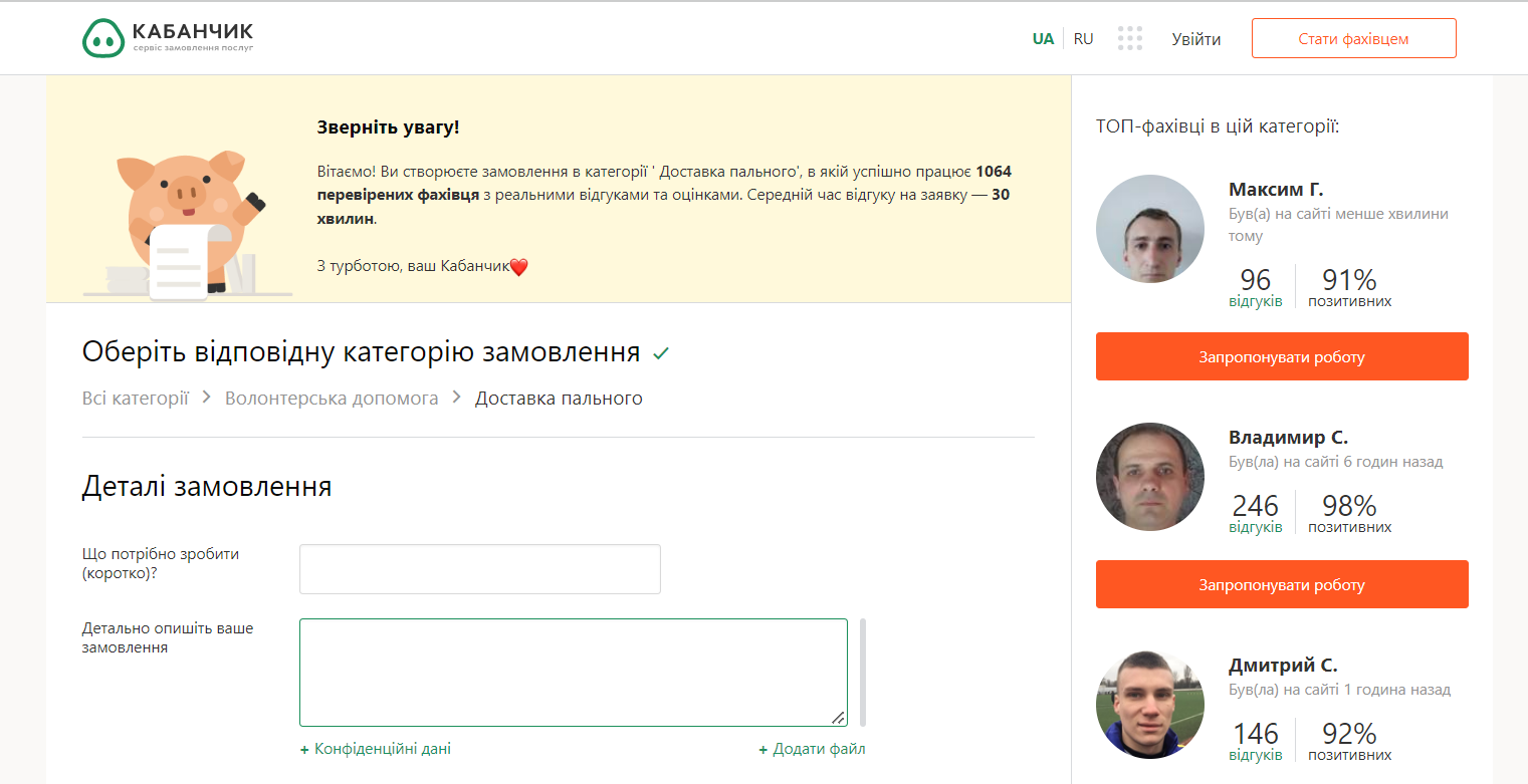 Найчастіше люди замовляють бензин марки А95, як зазначено на ресурсі, в цьому напрямку успішно працюють 1064 перевірених фахівця. Середній час відгуку на заявку складає 30 хвилин.