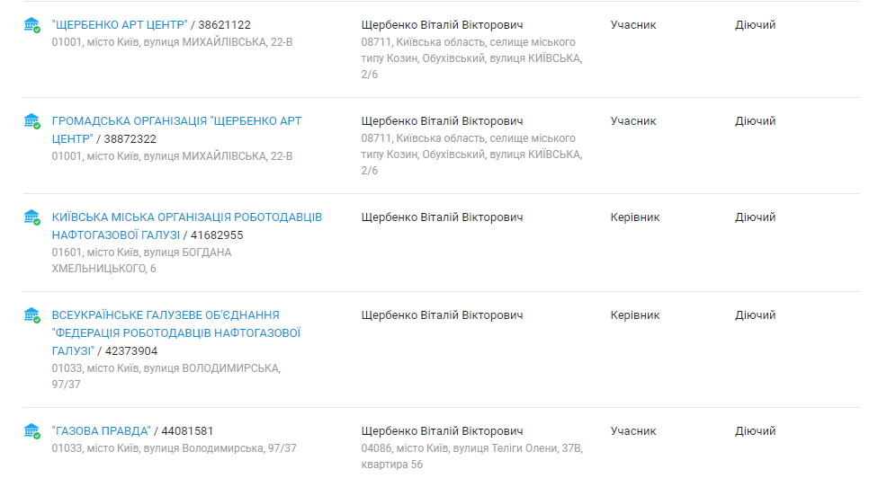 ФРНГ – общественное объединение при Группе Нафтогаз. Активы объединения в 2020 году составляли более 193 млн грн. Кроме того, он является руководителем Киевской городской организации работодателей нефтегазовой отрасли с активами в 45 млн грн по состоянию на 2020 год. Виталий Щербенко работает в «Нафтогазе» директором по энергоэффективности и управления имуществом Группы Нафтогаз. Обеспечивает организацию и планирование программ группы Нафтогаз в сфере капитальных инвестиций и непрофильных активов.