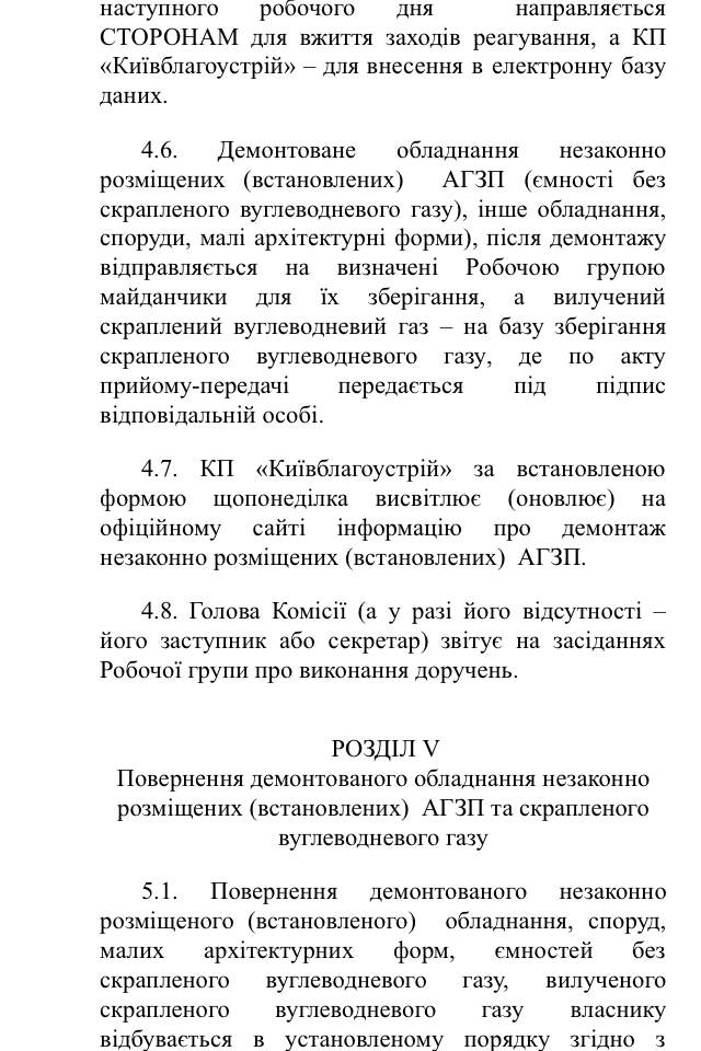Отметим, что в «Механизме демонтажа» не прописана процедура определения площадок для хранения оборудования и подрядчиков для перевозки и хранения газа, а также стоимости их услуг. Как сообщал НефтеРынок ранее, чиновники КГГА организовали коррупционную схему, в результате которой владельцы демонтированного оборудования получали счета за хранение превышающие стоимость оборудования и откачанного из емкости газа. В то же время был организован бизнес по реализации изъятого оборудования без документов через третьи лица.