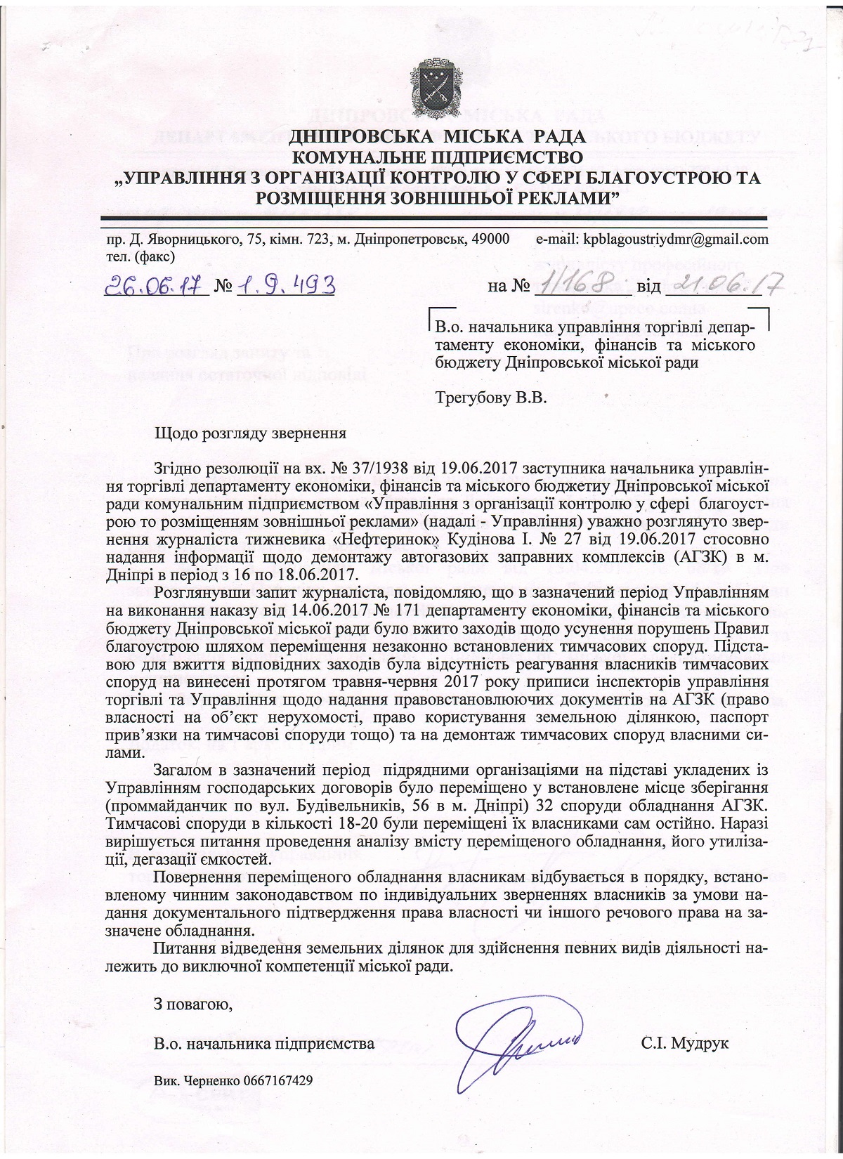 По приказу от 14.06.17 №171 департамента экономики, финансов и городского бюджета Днепровского городского совета, по второй половине июля 2017 года в Днепре, комунальными службами, было демонтировано 32 АГЗС и передано в ответственное хранение на промплощадку г. Днепр по ул. Строителей, 56 в.