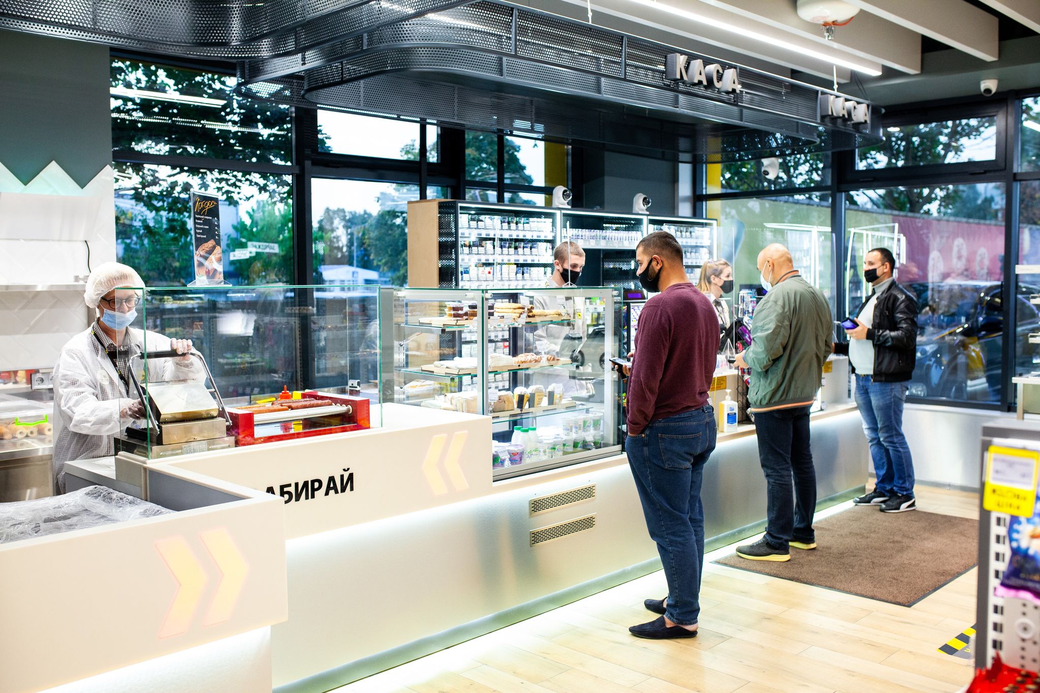 На станции есть 4 ТРК на все имеющиеся в сети виды топлива, магазин, кофейня KAWABAR.