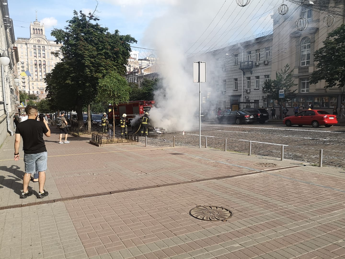 Около Центрального офиса «Нафтогаза» по улице Б.Хмельницкого, 6 горит Mercedes-Benz E-200 2011 года выпуска. Об этом сообщают очевидцы в социальных сетях.