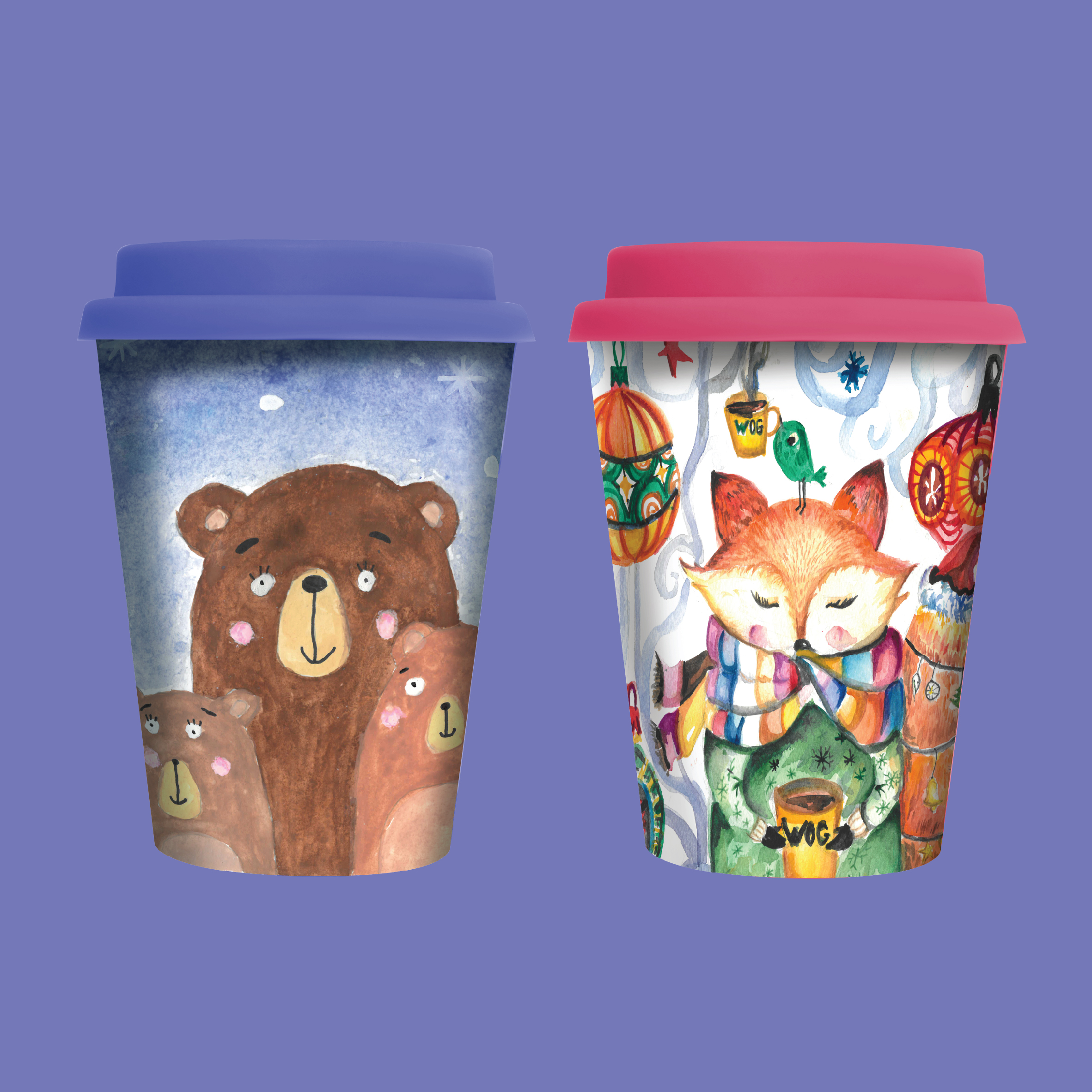 В серию вошли три бумажных и два бамбуковых многоразовых стаканчика. Каждый из них с уникальным дизайном, его создали дети, которые победили в ежегодном конкурсе WOG «Твори рождественский чудокофе». Победителей выбрали путем открытого голосования на сайте.