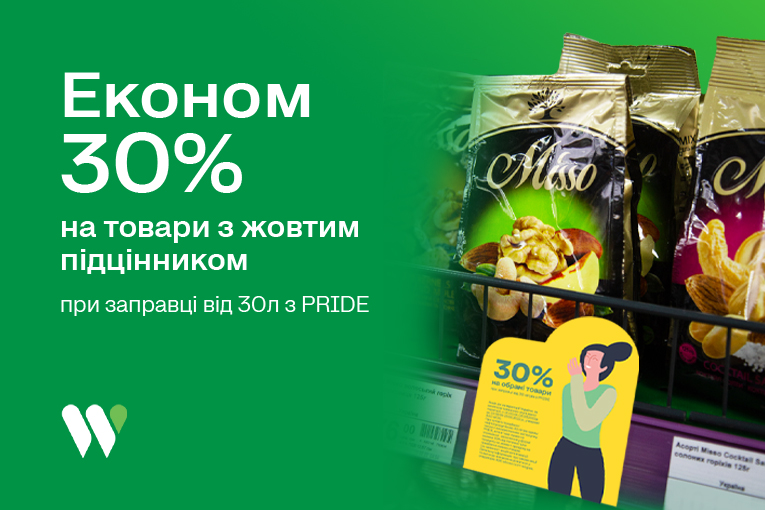 “Заправляй своє авто від 30 л якісним пальним з PRIDE і отримай знижку від 30% на товари з жовтим підцінником у WOG MARKET”, – йдеться в повідомленні мережі. Скористатись акційною знижкою можна лише в день заправки.