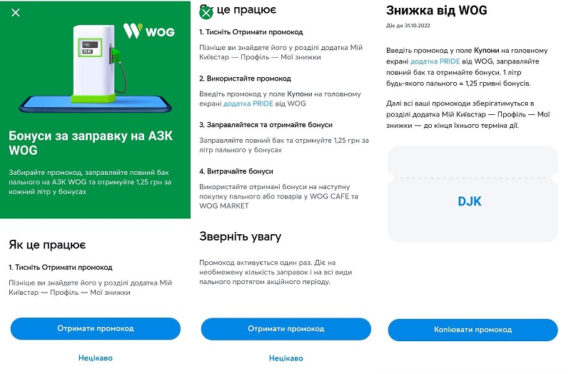Абоненти мобільного оператору «Київстар» можуть отримати промо-код на знижку при заправці на АЗС WOG.