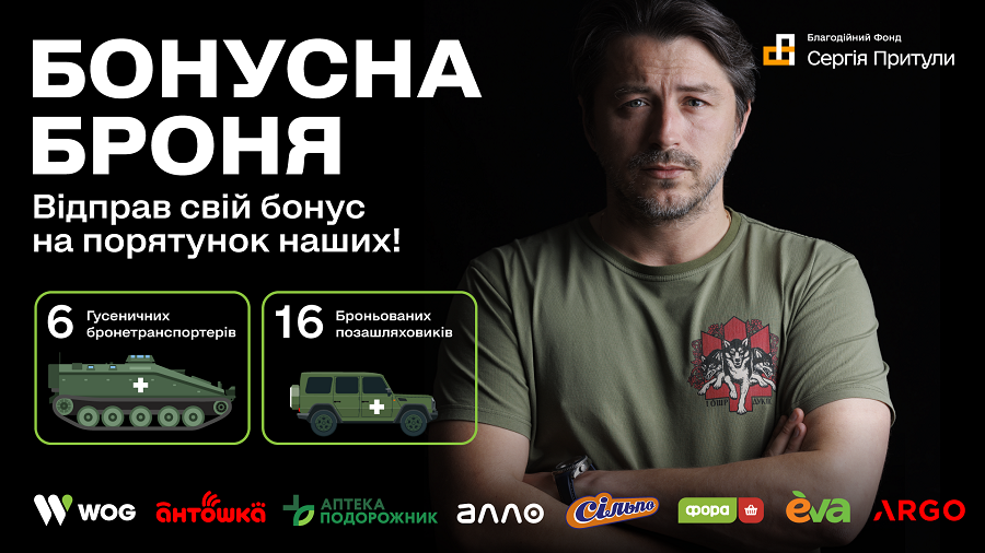 Мета проєкту – закупити броньований медико-евакуаційний транспорт для Сил Оборони України: 6 гусеничних бронетранспортерів та 16 броньованих позашляховиків. Клієнти WOG можуть зробити свій внесок, перерахувавши впродовж жовтня на благодійний проєкт «Бонусна броня» довільну кількість бонусів, що накопичилися на їхньому бонусному рахунку PRIDE. Компанія конвертує їх у гривні та перерахує фонду Сергія Притули для закупівлі гусеничних бронетранспортерів типу FV-432. Окрім того, фонд здійснить їхню технічну підготовку, комплектування та передасть підрозділам Сил Оборони як медико-евакуаційний транспорт.