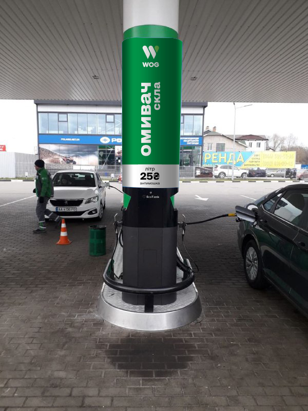 Компания WOG одна из первых в Украине установила инновационное, удобное в использовании и экологичное решение для залива стеклоомывающей жидкости. Оборудование работает на столичном АЗК, расположенном по ул. Стеценко, 21.