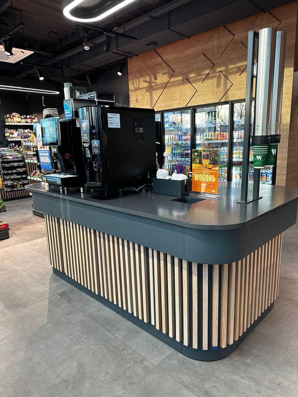 Кавомашини розташовані на спеціальному кавовому острові WOG Barista. Це дає змогу покращити ергономіку приготування кавових напоїв та розвести гостьові потоки, кажуть в компанії.
