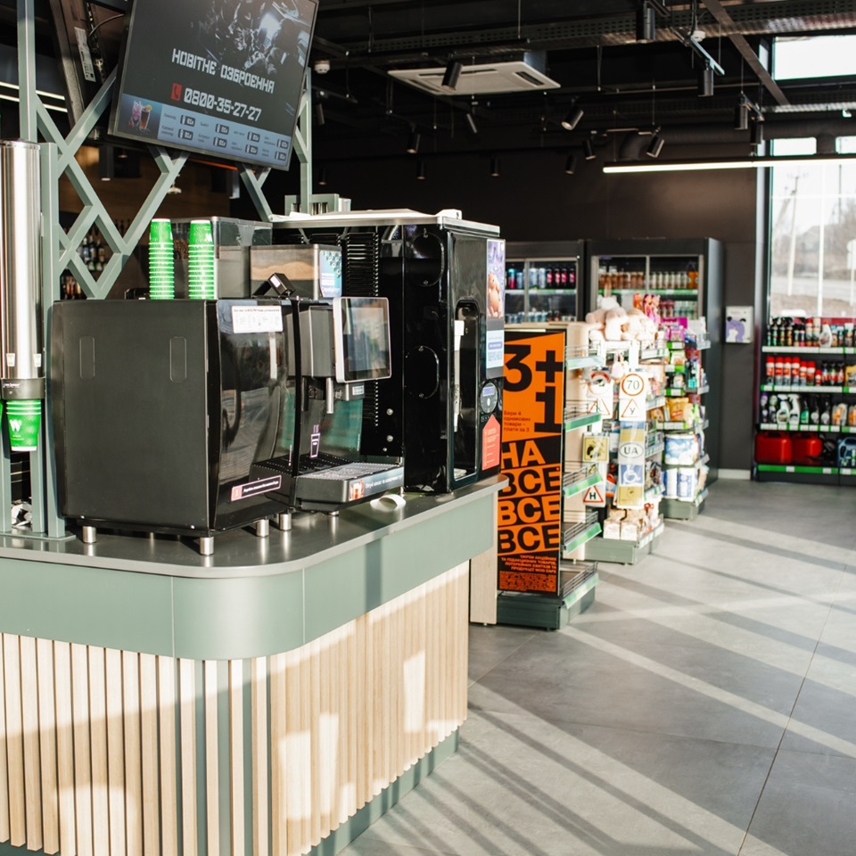 оновлена кавова зона з кавомашинами Franke на окремому острові для самостійного приготування напоїв;