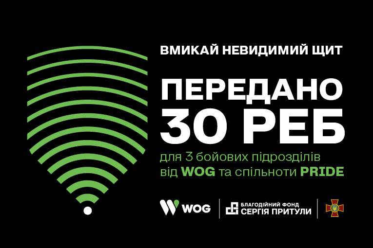Мережа WOG та члени програми лояльності PRIDE зібрали 5,8 млн грн на засоби радіоелектронної боротьби (РЕБ) для Сил оборони в рамках проєкту «Невидимий щит», який проводив Благодійний фонд Сергія Притули. Про це НафтоРинку повідомили в пресслужбі WOG.