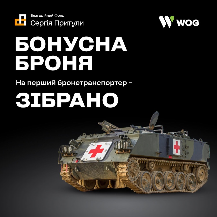 «Ми конвертуємо твої бонуси у гривні та перерахуємо Благодійному фонду Сергія Притули для закупівлі гусеничних евакуаційних бронетранспортерів типу FV-432», – зазначили в WOG .