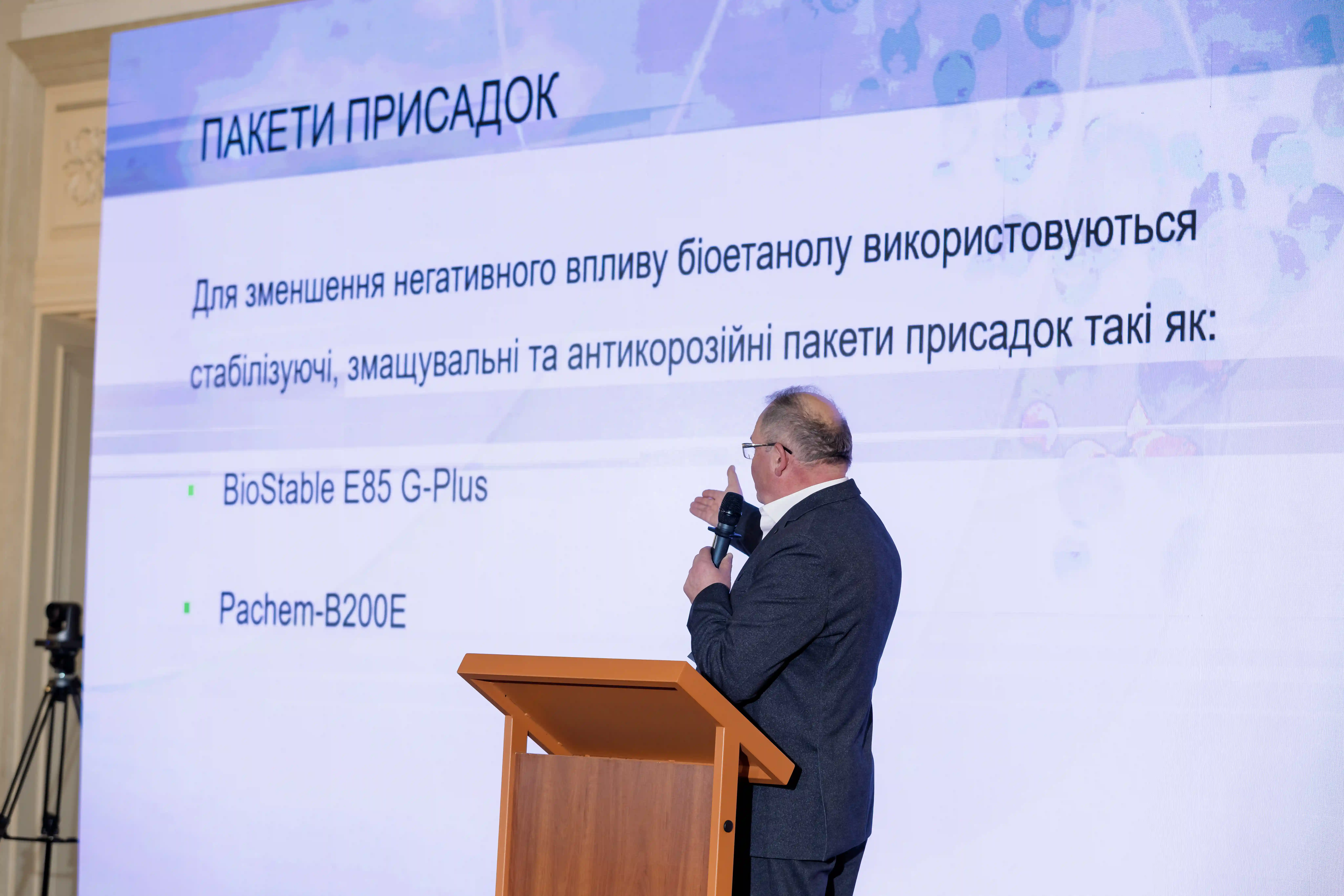 Андрій Пушак, директор ТОВ «Палтех», під час Б2Б зустрічі 2025 розповів про американській досвід роботи з біобензинами, де, за словами доповідача, з біоетанолом змішується 80% бензину.