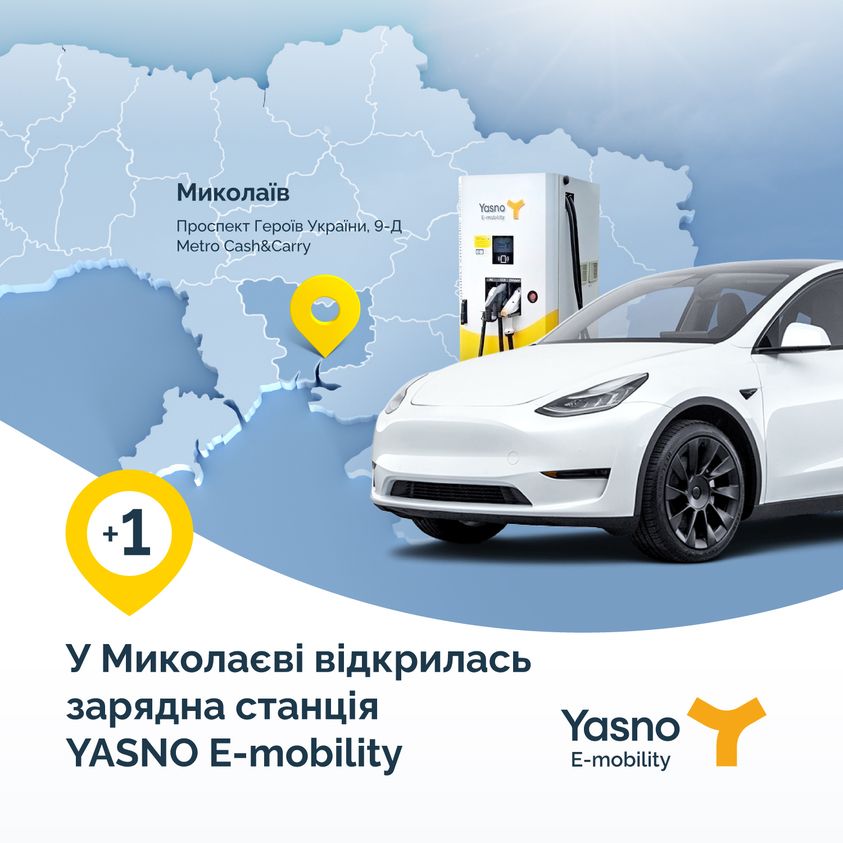 «Продовжуємо розвивати нашу мережу YASNO E-mobility. І у нас +1 зарядна станція на мапі України», – йдеться у дописі.