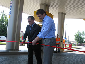 Мэр вместе с коммерческим директором КЛО Вячеславом Стешенко принял участие в разрезание торжественной ленточки. После этого состоялись подарочные проливы 10 л бесплатного топлива. В роли обслуживающего персонала выступили сами руководители компании. «Мы увидели, что можем изменить отношение украинцев к своей стране. Выпуская путеводители, мы заботимся о том, чтобы путешествие для автомобилиста было комфортным», - рассказал на брифинге Вячеслав Стешенко. Станция, расположенная по ул. Баранова, стала первой станцией в областном центре. Она представляет собой новейший комплекс с традиционной для компании топливной линейкой. На территории АЗК расположены фирменный ресторан быстрого обслуживания «Борщ», маркет «Подорожник» и новые для региона автоматические автомойки.