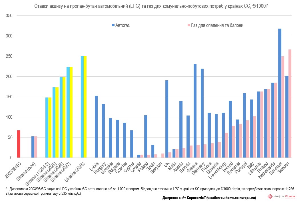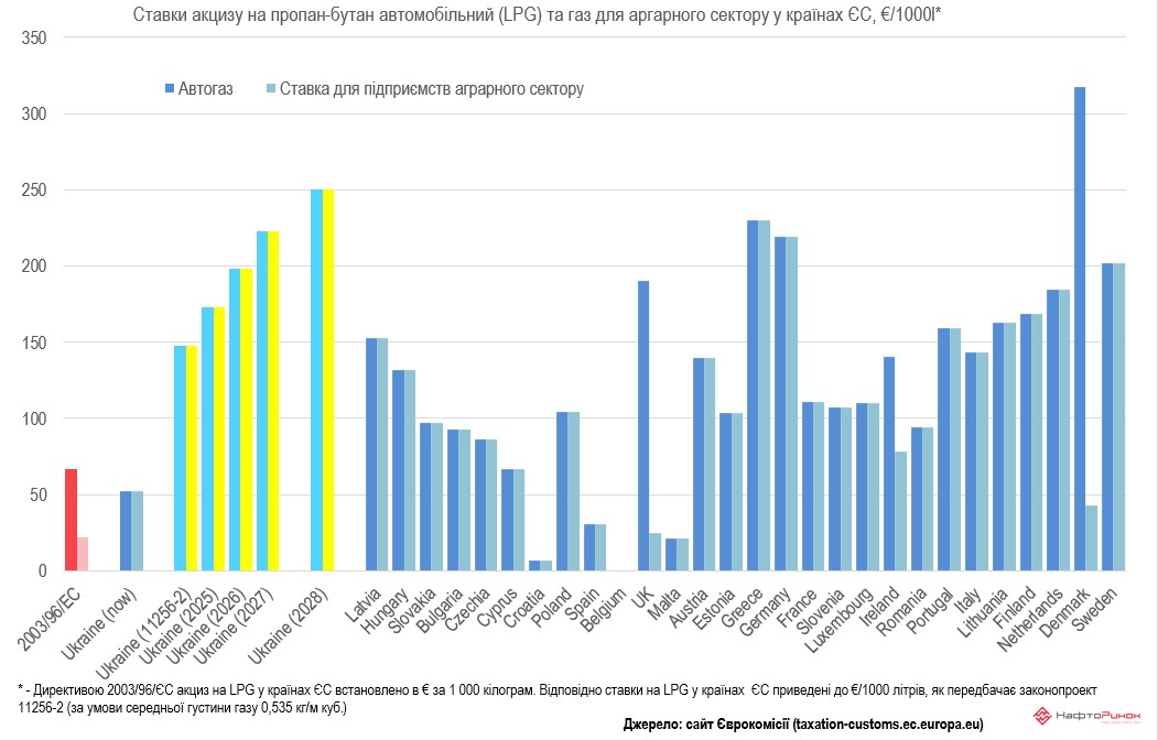 Інакшою є ситуація з акцизом на LPG для агросектору в Європі. Тільки Данія, Ірландія та Британія мають знижену ставку акцизу на пропан-бутан, який використовують у сільському господарстві, при чому різниця становить в 2-7 разів від ставки на газ, який продається на АЗС.