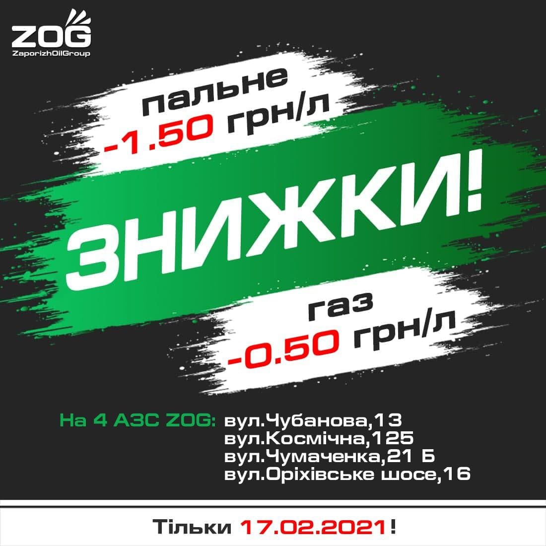 Акция действует 17.02.2021 и только на 4-х АЗС ZOG: