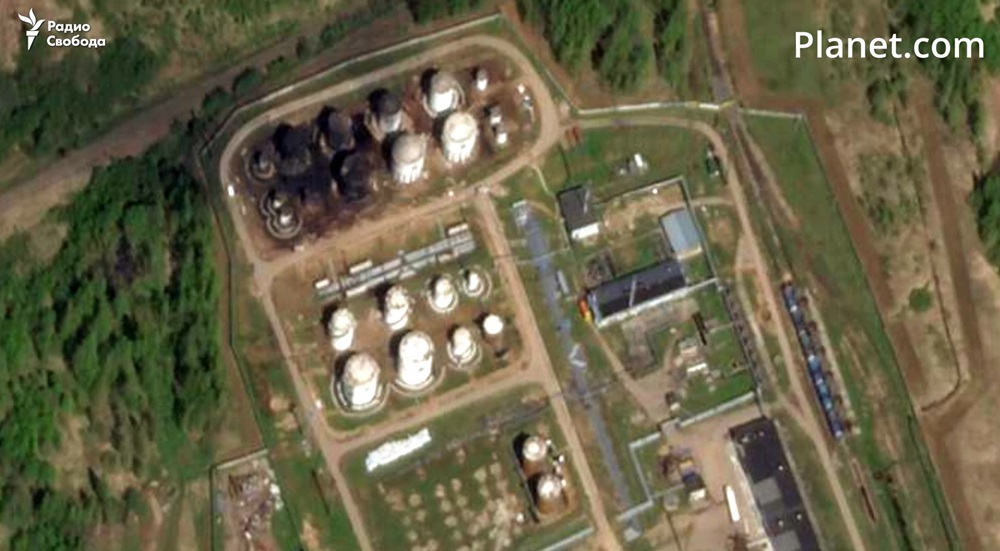 Російська редакція «Радіо Свобода» опублікувала супутникові знімки, що показують наслідки удару українських дронів по нафтобазі «Роснефті» в Смоленській області.