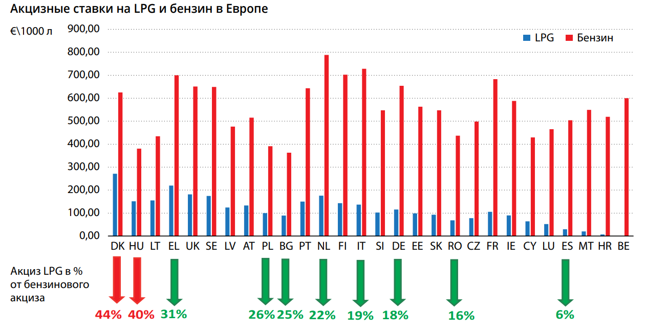 Текущие ставки акцизов (€52/1000 л и €213/1000 л соответственно), по мнению гендиректора Liquid Gas Europe, уже немного выше среднего по Европе. «Предложение сократить разрыв (соответственно €130/1000 л и €170/1000 л - НР) сделает соотношение газовой и бензиновой ставки самой высокой в мире!», - отметил Самуэль Маубанк. Рекомендации европейца были короткими: поддерживать соотношение ставок не выше 35% (без снижения ставки на бензин этого добиться не получится) и оптимизировать конкурентоспособность между LPG и бензином.