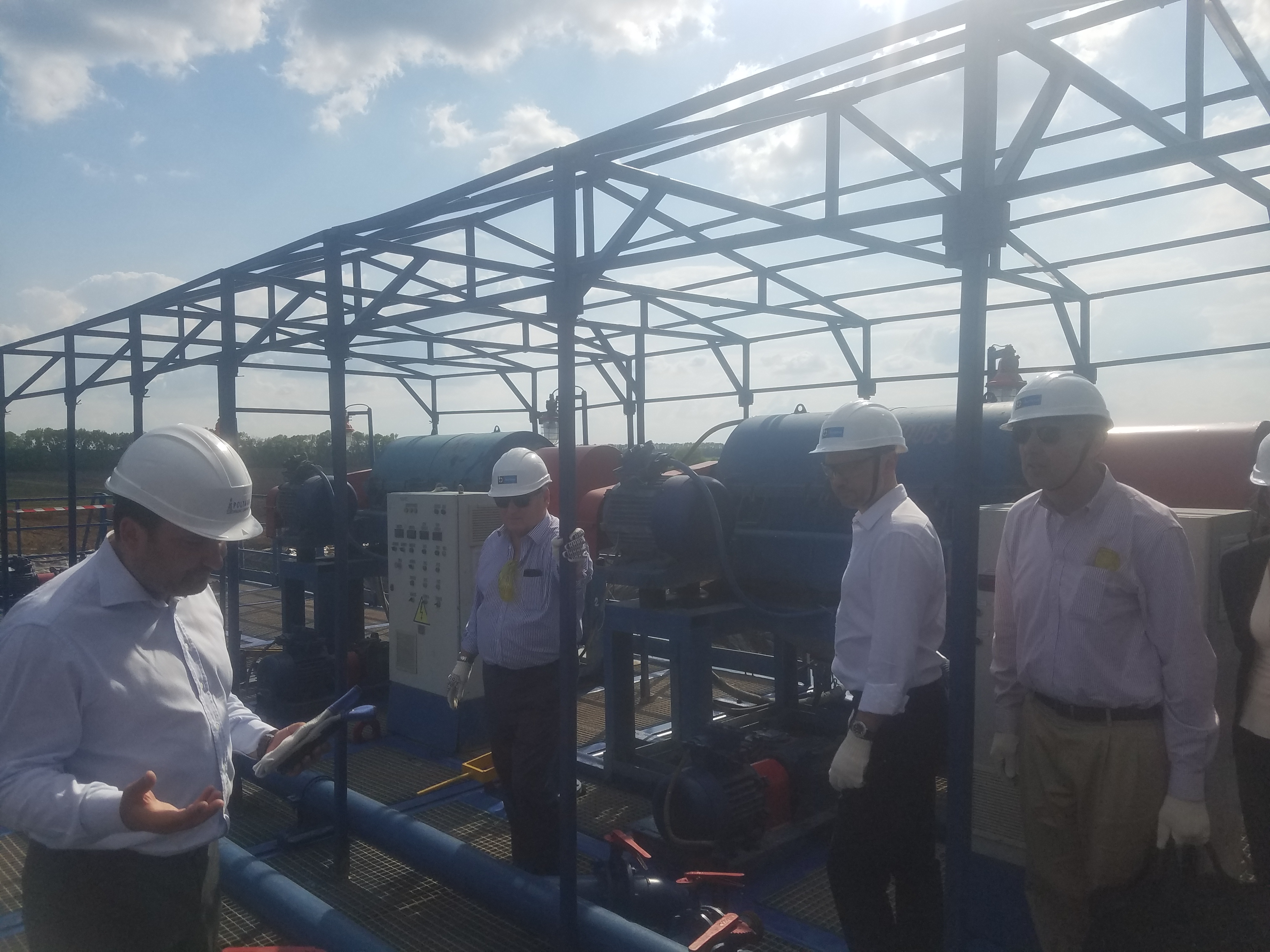 В рамках пресс-тура НефтеРынок получил возможность увидеть, как проводится реконструкция установки комплексной подготовки газа на Водяновском месторождении, что позволит увеличить объемы подготовки природного газа с 500–600 тыс. м3 до 3 млн м3/сут. Как сообщил директор «Системоилинжениринг» Сергей Жеребко, стоимость такой реконструкции обойдется примерно в 160 млн грн. Также он подчеркнул, что это необходимо, поскольку к установке подключены уже 3 скважины с высокими пластовыми давлениями (1000–1200 атм) и на подходе завершения бурения и ввода в эксплуатацию еще 2 скважин с последующим подключением к УКПГ.