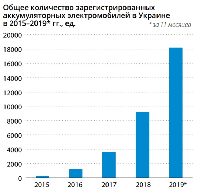 Количество электрокаров в Украине стремительно растет, несмотря на то что в мировых масштабах цифры пока не впечатляющие. Если в Китае и США количество электрокаров в эксплуатации измеряется в миллионах, то у нас - в десятках тысяч. Как сообщили НефтеРынку в Главном сервисном центре МВД, по состоянию на 10 декабря в Украине было зарегистрировано 18,2 тыс. чистых электромобилей, что почти вдвое больше, чем было в конце 2018 года. Кроме того, в нашей стране насчитывается 17,8 тыс. гибридов, значительная часть которых заряжается от сети. При этом в МВД отметили, что отдельная статистика заряжаемых гибридов не ведется. Основное количество электромобилей сосредоточено в крупных городах - Киеве, Одессе, Харькове и Львове.