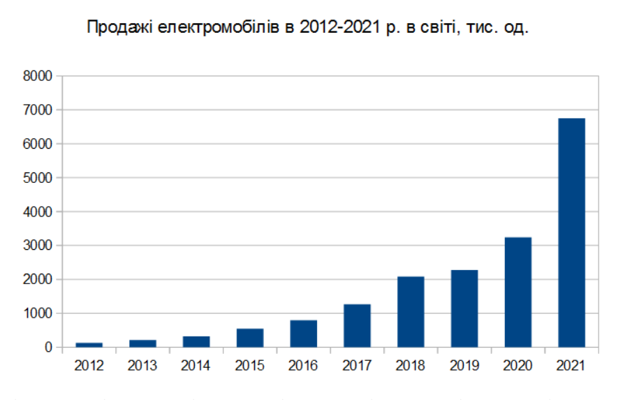 Світові продажі електромобілів у 2021 р. зросли вдвічі у порівнянні з 2020-м та сягнули 6,75 млн од., повідомив портал EV-Volumes. В повідомленні зазначається, що ця цифра включає легкові авто та легкий комерційний транспорт. Аналітики також повідомили, що зростання кількості реєстрацій за підсумками 2021 р. на 108% є найбільшим з 2012-го.