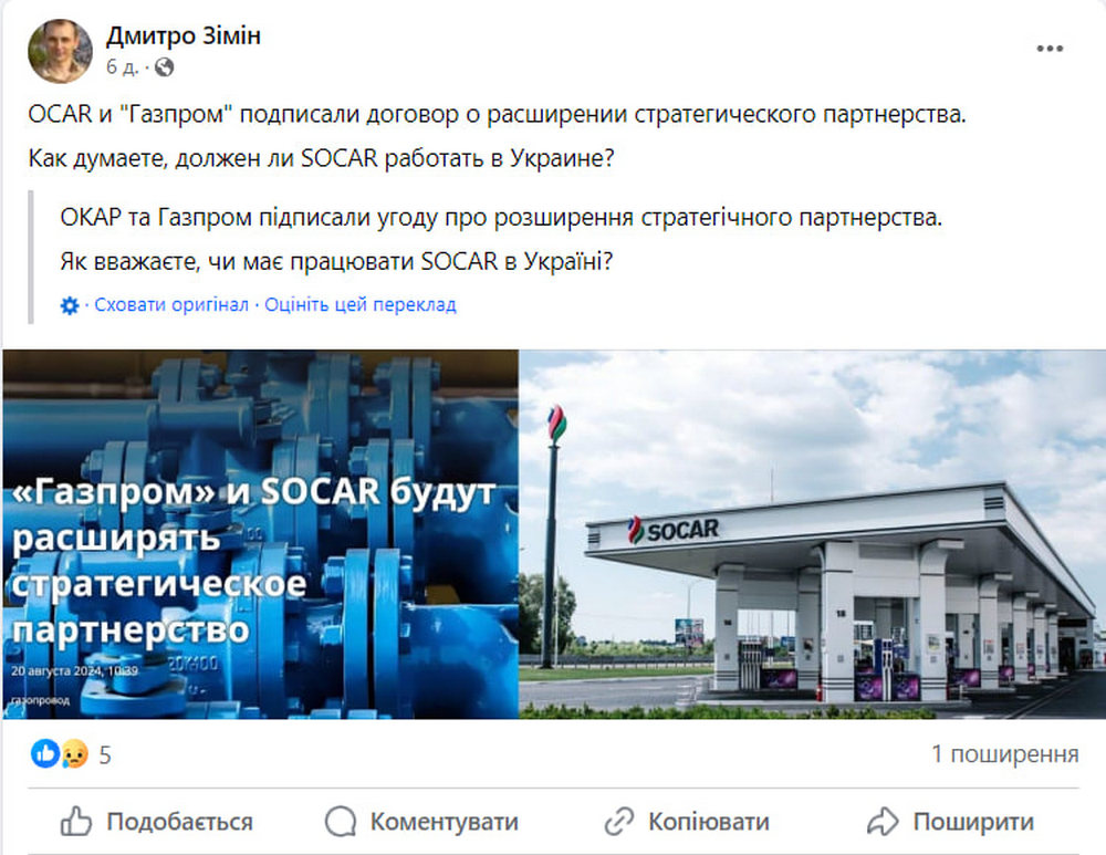 За його словами, тільки повідомлення на сайті «газпрому» про розвиток відносин із SOCAR (азербайджанці, на відміну від росіян, не піарились на цьому візиті, про який по суті попросила українська сторона) стала основою для фінальної та потужної третьої хвилі негативу проти азербайджанського бізнесу в Україні. «Ми дослідили, що до обіду 20 серпня в соцмережах так звані лідери думок закликали оминати мережу АЗС SOCAR, при чому з текстом про бойкот майже водночас вийшли декілька блогерів з великими охватами, то ввечері та наступного дня було зафіксовано негативні та образливі повідомлення, в тому числі про можливий підпал заправок SOCAR», говорить Сіренко.