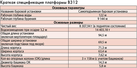 СПБУ В312 была построена на судостроительном заводе Keppel Fels в Сингапуре, который по праву считается одним из лучших предприятий в мире, специализирующихся на строительстве самоподъемных и полупогружных БУ. Строительство выполнялось с использованием передовых технологий по собственному проекту дизайн-бюро Keppel Fels под названием Keppel Fels B Class и было завершено в декабре 2010 года. Платформа использует высокотехнологическое оборудование и решения ведущих мировых производителей, таких как NOV, Caterpillar, Vetco Gray, Cameron, Weatherford, Ingersoll-Rand, Techflow — UK, FAVCO, Alfa-Laval, Lincoln, Kato, LEWCO, Brandt, Norsafe.