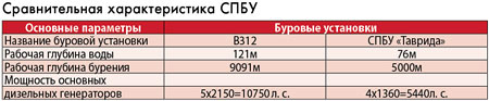 Главными критериями при выборе новой установки стали технические параметры, в частности допустимая глубина моря, глубина и скорость бурения скважин. По своим основным параметрам новая СПБУ почти вдвое превосходит «Тавриду» (см. табл. сравнения), а также в два раза экономит время, отведенное на бурение и строительство скважин. Кроме того, должное внимание уделено безопасности работы нефтяников на платформе в свете всем известных трагических событий в Мексиканском заливе в апреле прошлого года.