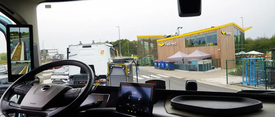 Заряджанню вантажівок в Fastned приділяють окрему увагу, оскільки компанія має на меті заохочувати компанії-перевізники переходити на електротягу. Для важкого транспорту призначені 4 CCS-зарядки потужністю 400 кВт кожна, які розташовані у спеціальних зонах для вантажівок — по дві зарядні колонки з кожного боку траси. Для вантажівок також передбачені окремі місця для стоянки.