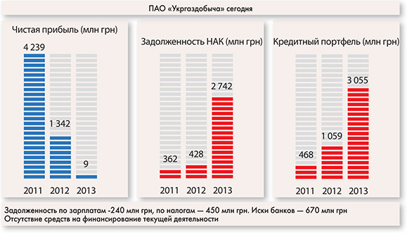 О том, что «Укргаздобыча» работает фактически на грани выживания, известно далеко за ее пределами. Если компания берет кредит для погашения долгов по заработной плате – быть беде. А кредитов было взято немало: на конец 2013 года долги компании составили более 3 млрд грн.