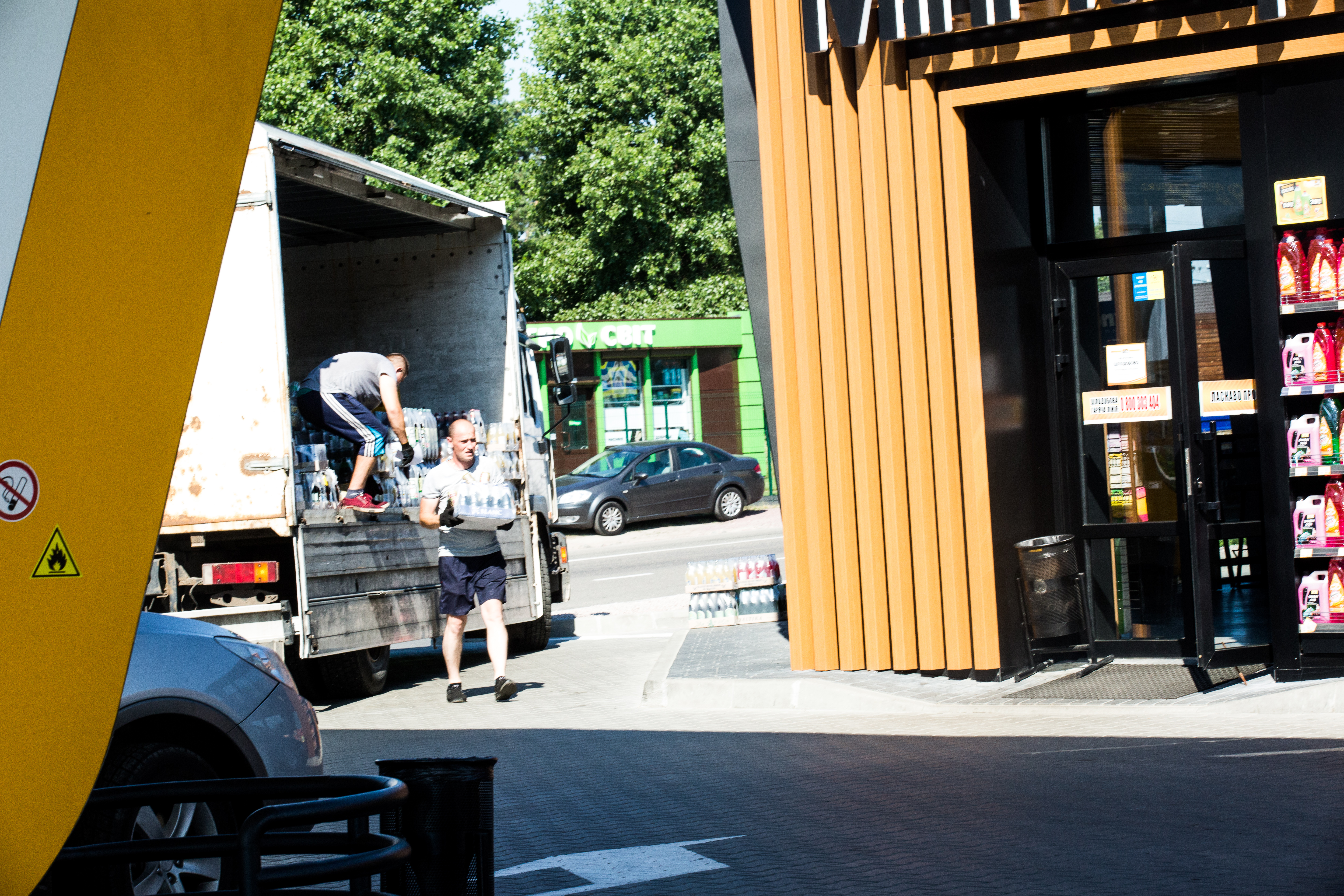 Прохладительные напитки, кофе и легкий алкоголь улетают, как осенние листья на ветру, и чтоб пополнить запасы, огромная фура выбирает момент, когда на восьми постах появляется просвет, и занимает позицию поближе к мини-маркету – чтобы ближе носить упаковки с напитками. Два опытных специалиста по логистике за 10 минут оперативно выгружают запас различных напитков и снеди на несколько часов работы АЗК и отъезжают – фура спешит на другие АЗК оператора.