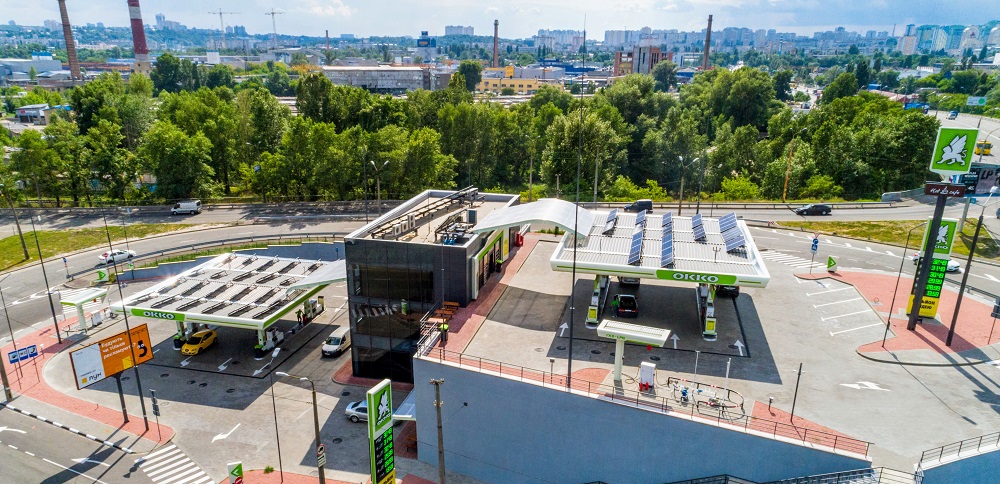 У другій половині 2010-х встановлювати СЕС на своїх станціях заходилися в WOG та OKKO. Перша сонячна електростанція на даху АЗК OKKO з’явилася у 2017 р. на проспекті Академіка Палладіна в Києві. Ця СЕС потужністю 50 кВт і досі залишається однією з найбільших у мережі, розповіли в OKKO, зазначивши, що за ясної, сонячної погоди вона здатна виробляти понад 200 кВт-год електроенергії на добу. «У літні місяці цього вистачає, щоб середній за розміром АЗК міг повністю забезпечувати себе власною електроенергією», – повідомляється на сайті компанії.