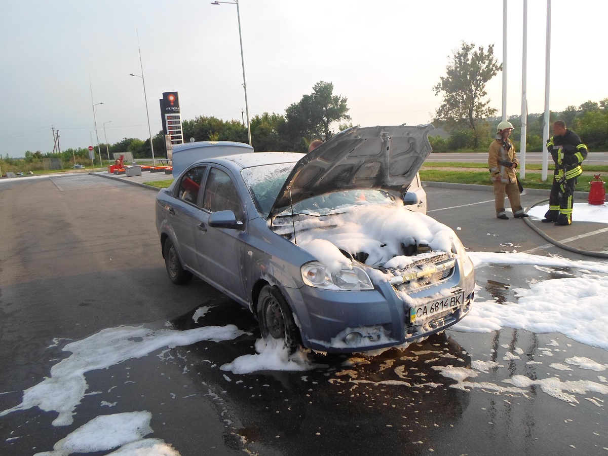 Увечері 5 серпня, рятувальникам надійшло повідомлення, що на АЗС Flash Plus (Миронівський р-н, автодорога Київ-Знам'янка), виникла пожежа в моторному відсіку автомобіля Chevrolet.