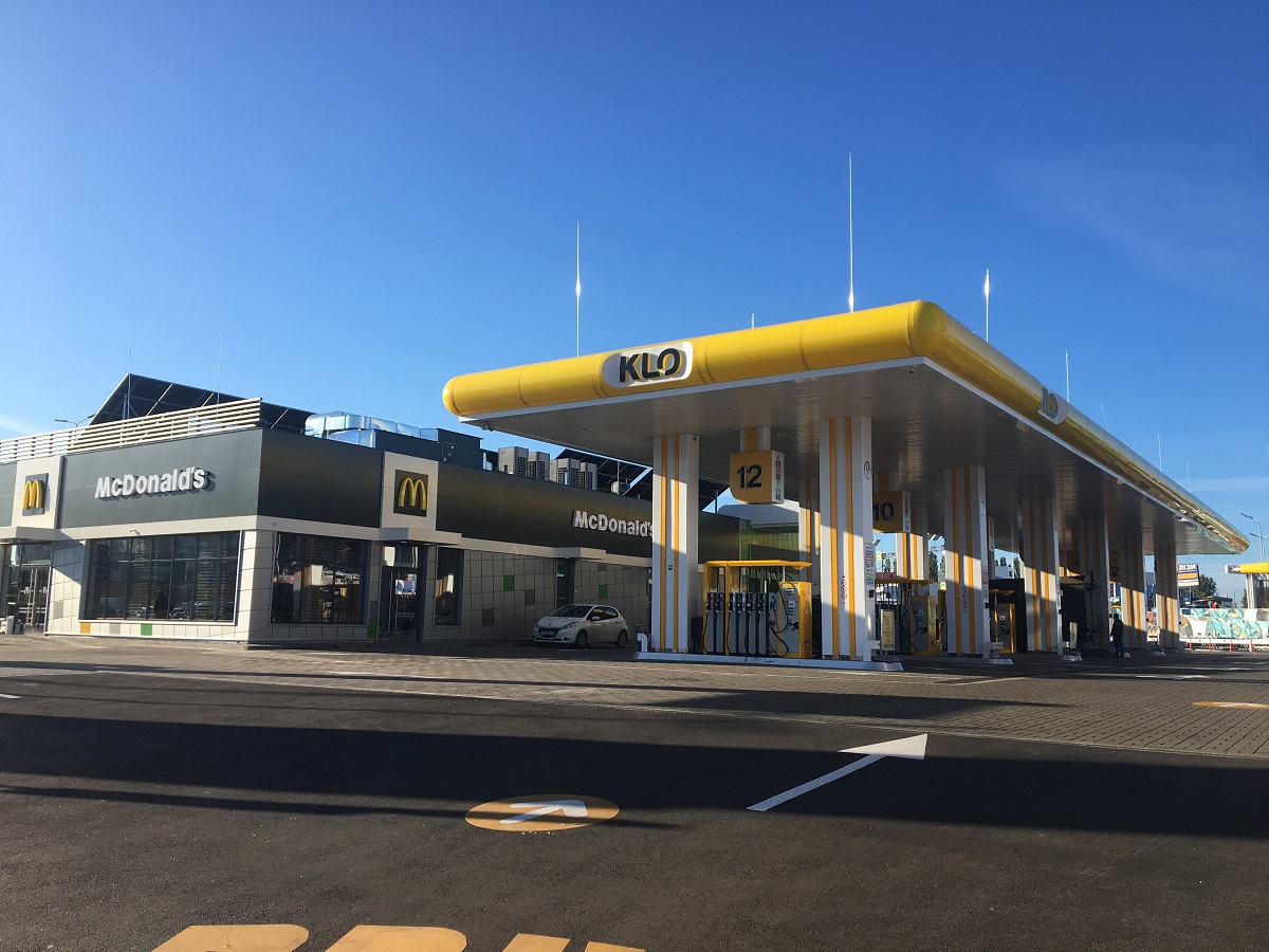 Нагадаємо, навесні цього року KLO розпочала реконструкцію АЗК на столичній Кільцевій. Під час реконструкції стара АЗС була знесена, і на її місці почалося будівництво нового «наскрізного» АЗК, який би охоплював потоки головної магістралі і бічні, в бік пригороду. Для цього навіть довелося поглибити будівельний майданчик до рівня Кільцевої дороги.