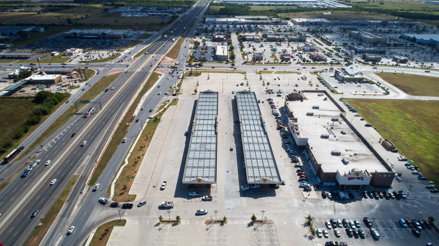АЗК вражає своїм розмахом, що є характерною рисою Buc-ee's. На станції 120 місць для заправки пальним, і на кожному можна залити в бак один з п’яти видів пального. На станції продається чотири різновиди бензину да ДП.