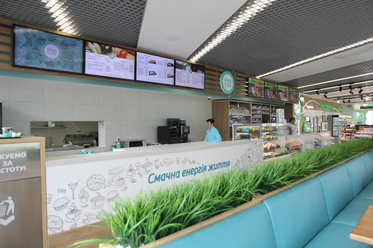 На автозаправній станції відкрили оновлене VIVO-cafe. Так, в новому форматі зона кафе стала ширше. Крім того, для зручності відвідувачів касова зона VIVO-cafe розмістилася в один ряд з «нафтопродуктовою». Відвідувачам кафе запропонована широка лінійка фірмової продукції: бургери, сендвічі, буріто, снеки, холодні і гарячі напої, а також перші і другі страви.