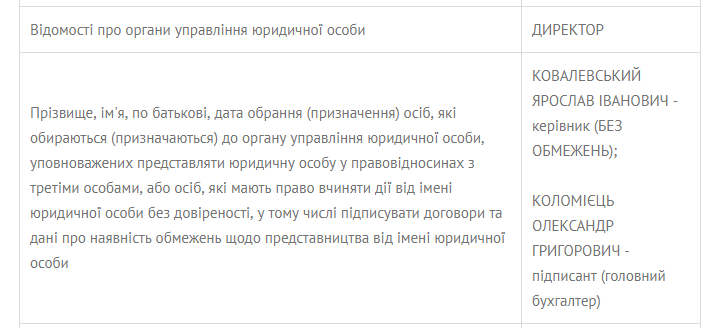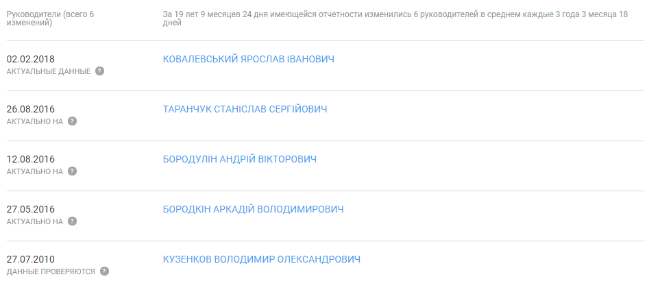 За даними youcontrol, Ковалевський Я. І. став в.о. директора 2 лютого 2018 року.